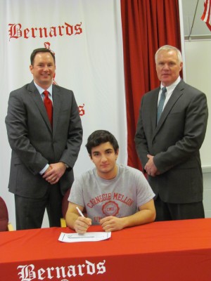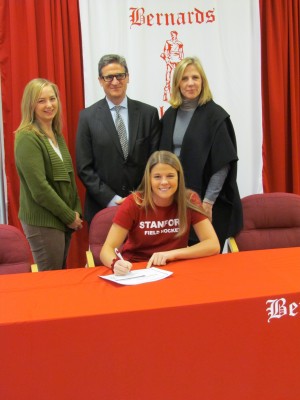 On February 18th, the 21 Bernards High School Senior sports commits gathered in the community room for a memorable ceremony. Superintendent Wood attended the event and gave a speech thanking the athletes for their accomplishments on and off the playing field. After the hard work and dedication for the past four years of their high school careers the girls and boys attend top universities such as Stanford, Dartmouth, University of Virginia, and Carnegie Mellon. Ranging from rowing to basketball, they all signed their letter of intent surrounded by their coach, parents and administrators.